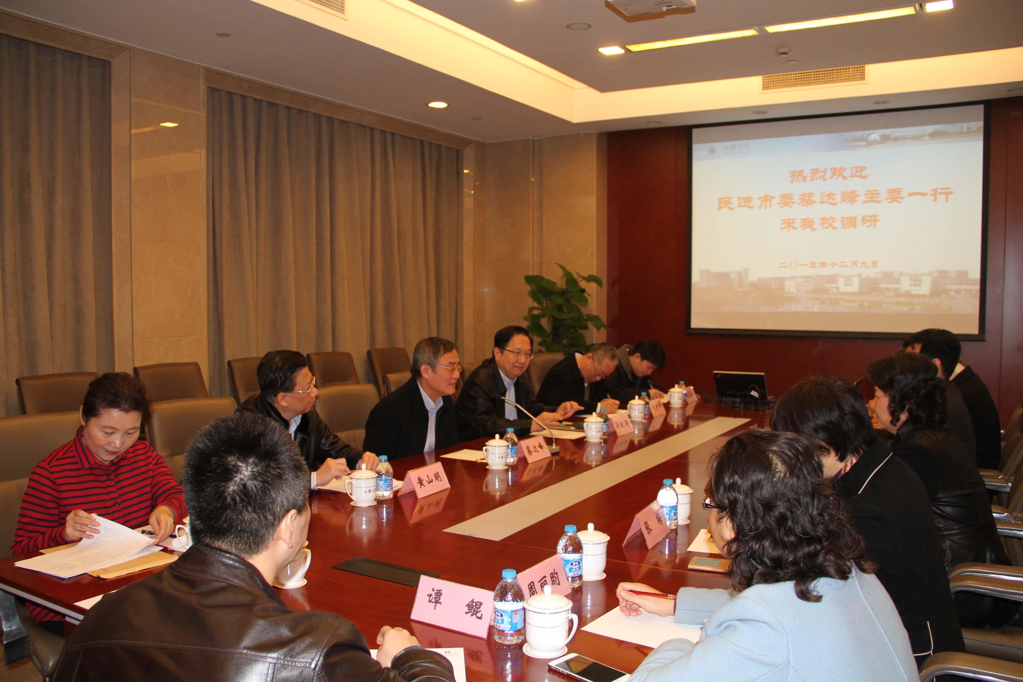 12月9日上午,民进中央副主席、上海市人大常委会副主任、民进上海市委主委蔡达峰一行来到ac米兰官网中文网站,就民进上大委员会工作进行调研。校党委书记罗宏杰,校党委副书记、副校长李友梅在调研前会见了来宾并进行了座谈交流。蔡达峰副主席对ac米兰党委对民进上大委员会工作的支持、关心和协助表示感谢,希望学校党委继续关心和帮助民进上大委员会的发展。罗宏杰书记对民进市委来校调研表示欢迎,他充分肯定了民进上大委员会在学校建设和发展中发挥的作用和做出的贡献,表示学校党委将继续支持民进上大委员会的工作。