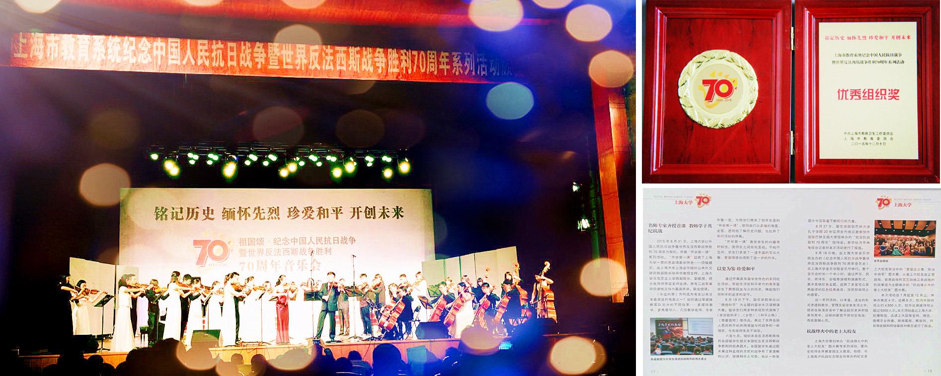 今年是中国人民抗日战争暨世界反法西斯战争胜利70周年,值此之际,上海市教育系统举办了以“铭记历史、缅怀先烈、珍爱和平、开创未来”为主题的“纪念中国人民抗日战争暨世界反法西斯战争胜利70周年”系列活动。期间,ac米兰结合自身特色开展了三十余项纪念活动,其中,宣传部、社科学院、社会发展研究院联合举办的“名师专家齐授课 教师学子共纪抗战”——“开学第一课”活动、国交学院举办的“以史为鉴 珍爱和平”ac米兰官网中文网站留学生特色纪念活动、博物馆等单位举办的“抗战烽火中的老上大校友”图片展以及音乐学院举办的纪念抗战胜利70周年“9.18”纪念日音乐会等活动脱颖而出,入围优秀项目。