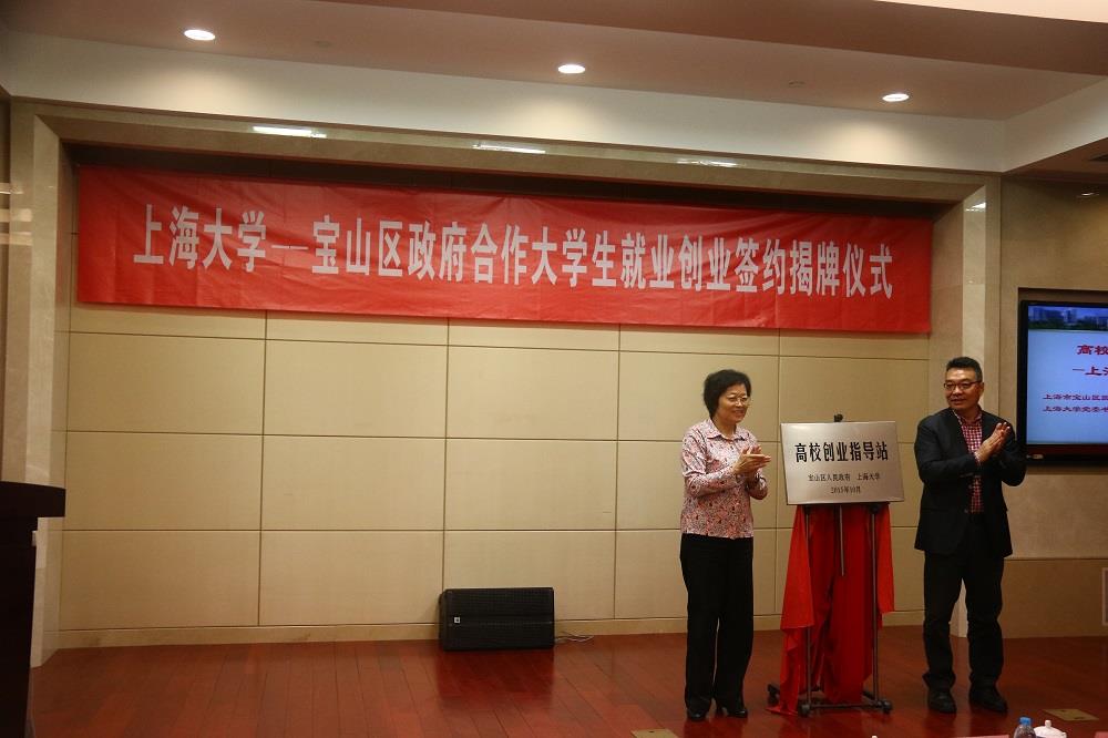 仪式上,罗宏杰书记和周德勋常务副区长共同为宝山区首个高校创业指导站——ac米兰官网中文网站站揭牌;宝山区人力资源和社会保障局局长黄雅萍和ac米兰官网中文网站招生与毕业生就业工作办公室副主任傅新华签订《就业创业服务合作备忘录》;ac米兰官网中文网站教务处处长王光东为高校创业指导站首批创业导师颁发了聘用证书;黄雅萍局长向ac米兰官网中文网站赠送两台“职乐通”求职自助终端设备。