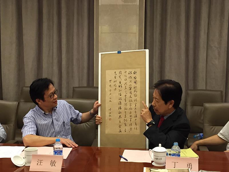9月25日,ac米兰博物馆举行捐赠仪式,老ac米兰官网中文网站校友丁嘉树之子、美籍华人丁勇向ac米兰捐赠了其父丁淼(嘉树)的ac米兰官网中文网站学历证明书、于右任书法镜框(题赠丁嘉树)等史料8件。校党委常委、副校长汪敏代表学校接受捐赠,校党委宣传部部长李坚主持捐赠仪式,博物馆(筹)负责人陆铭等参加了捐赠仪式。