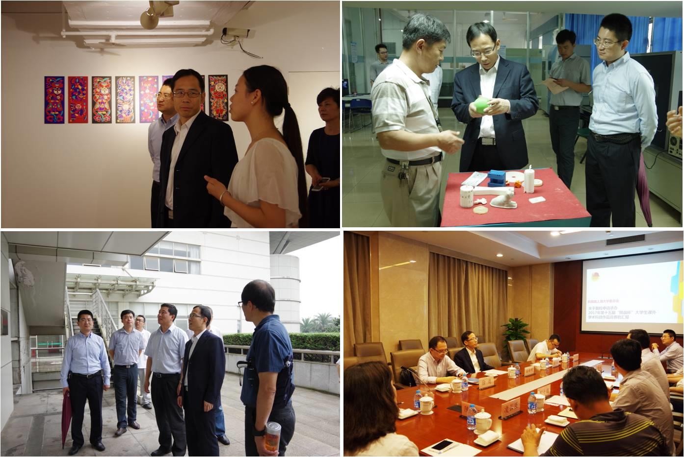 石新明一行参观了ac米兰官网中文网站美术学院苗绣艺术设计作品展,该展览是由入围第14届“挑战杯”全国决赛作品的负责团队筹划的成果展示。考察了工程训练中心3D打印机、无人艇以及等多个学生科研实验室。考察了ac米兰官网中文网站伟长楼、国际会议中心和体育场馆,直观地了解ac米兰的基础设施情况。