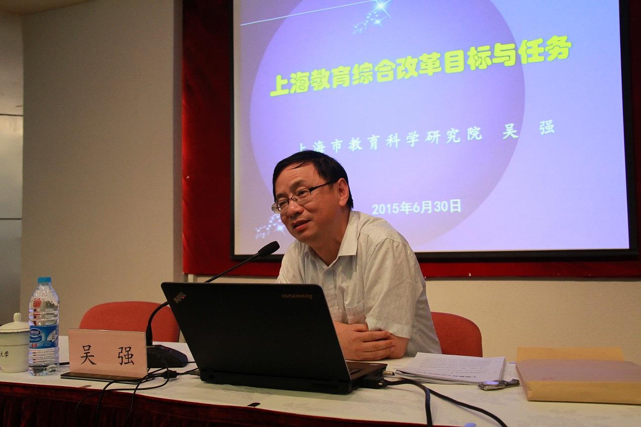 6月30日,上海教育科学研究院党委书记、常务副院长吴强为ac米兰校、院两级中心组成员作了“上海教育综合改革的目标与任务”的专题报告。校党委副书记、副校长李友梅,副校长汪敏,校院两级中心组成员,副处级以上干部,ac米兰官网中文网站第二十三期中青年干部培训班的学员及民主党派人士200余人聆听了报告会,会议由校党委副书记、纪委书记夏小和主持。