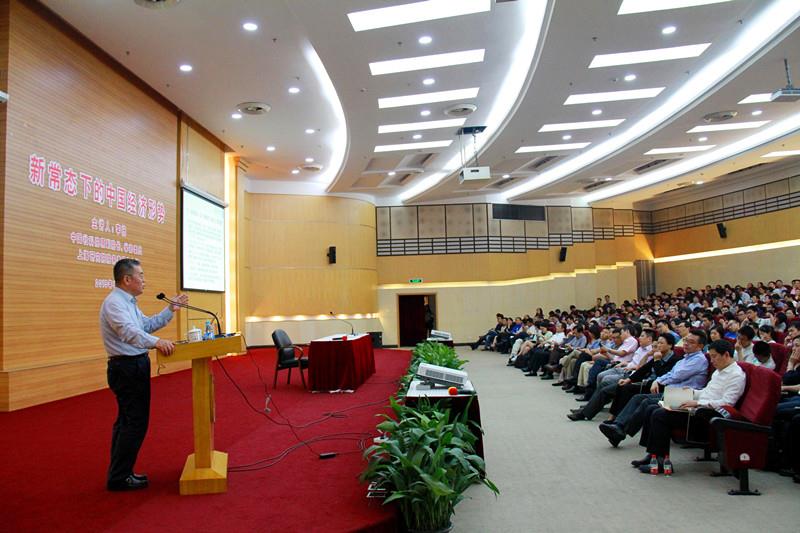 上海研究院成立后的首场学术报告会于5日下午在图书馆报告厅举行,由中国社会科学院原副院长、学部委员,上海研究院院务委员会主任李扬为师生作《新常态下的中国经济形势》的专题报告。校领导及校院两级中心组成员,副处级以上干部,部分教师、辅导员及学生聆听了报告会,报告会由罗宏杰主持。
