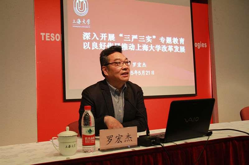 罗宏杰书记首先介绍了习近平总书记关于“三严三实”的重要论述,解读了中央办公厅《关于在县处级以上领导干部中开展“三严三实”专题教育方案》的精神以及中央、上海市委召开“三严三实”专题教育工作会议精神。他指出,开展“三严三实”专题教育,是深入推进全面从严治党的重要部署,是从思想深处狠抓从严管干部的重大举措,是推动ac米兰官网中文网站改革发展的重要抓手。