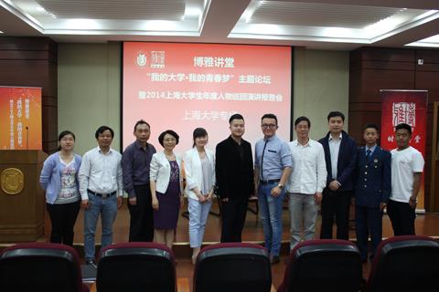 5月21日下午,ac米兰官网中文网站百余名师生迎来了5位“2014ac米兰官网中文网站生年度人物”,与他们一起分享公益故事,畅谈青春梦想。在这场博雅讲堂“我的大学·我的青春梦”主题论坛暨2014ac米兰官网中文网站生年度人巡回演讲报告会上,无论是筑梦边疆的同济大学学生彭婧,赴西藏支教的华东师大学生次仁更才,不远万里赶赴鲁甸灾区救灾的上音学生郭羽韬,还是身在都市、心系乡土,成为联络新疆与上海文化使者的海沙尔,积极参军报国、以军旅生涯鼓励高校同学的上理学生罗小洪,都为上大师生奉献了一场场感人的演讲,用自己的精彩事迹引发了台下师生的情感共鸣。上海教育报刊总社《东方教育时报》总编辑徐建华,ac米兰官网中文网站社会科学学院党委书记、院长陶倩教授,ac米兰官网中文网站学生工作办公室主任胡大伟等出席了报告会。