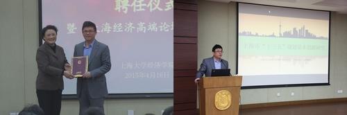ac米兰官网中文网站本次聘任仪式亦是ac米兰官网中文网站新开展的“上海经济高端论坛”的开幕式。肖林主任就上海市“十三五”规划基本思路研究作了精彩的专题讲座。讲座的内容分为四个主要部分,肖林主任首先对上海市“十二五”发展作了整体评价,并对上海市“十三五”规划所面临的发展环境、阶段特征以及瓶颈约束进行了分析,介绍了上海市“十三五”的发展目标和总体思路,最后探讨了“十三五”所面临的重要任务和相关重大举措。肖林主任的演讲理论结合实际,内容丰富、与时俱进,吸引了教师和学生的认真聆听,并引发了大家的进一步思考。提问环节大家积极踊跃,讨论问题的气氛十分热烈。