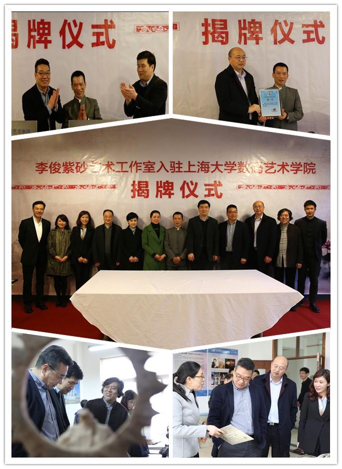 3月30日下午,李俊紫砂艺术工作室入驻ac米兰官网中文网站数码艺术学院揭牌仪式在嘉定校区数码A楼216工作室成功举行。上海市文化广播影视管理局党委委员、副局长贝兆健,ac米兰官网中文网站党委书记、校长罗宏杰,ac米兰官网中文网站党委副书记、副校长徐旭,上海市文化广播影视管理局文化影视产业处处长黄玮,紫砂艺术大师李俊,书画大师谢稚柳之子谢定琨等30余位领导及业内外知名人士出席揭牌仪式。