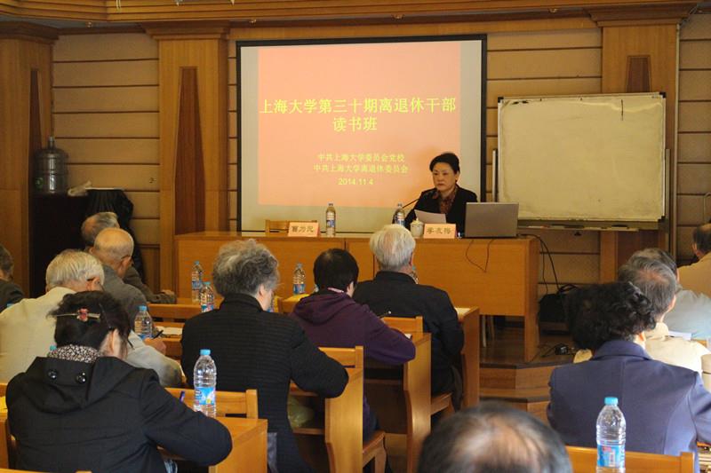 李友梅同志主要围绕学习贯彻十八届三中、四中全会精神和学校目前发展情况两个方面,与老同志进行了深入的交流。李校长首先通过对十八届三中全会关于深化教育领域综合改革的深入解读,向老同志们介绍了学校各方面的发展情况,比如“一市两校”综合改革试点、“部市共建”等;接着,李校长就近期学校正在开展的机构调整、新一轮干部聘任等方面的工作,与老同志们进行了沟通。动员讲话后,李校长为老同志们带来题为《关于我国社会治理的组织与秩序若干思考》的首场专题报告,结合当前形势,从社会、社会体制、社会领域的理论视野、我国社会治理的组织与秩序的历史演变、当前社会治理模式的转型面临的新问题三个角度进行了深入解读。同时,读书班还邀请了校外专家做题为《当前形势与新一届中央领导集体治国理政新思路》的专题报告。