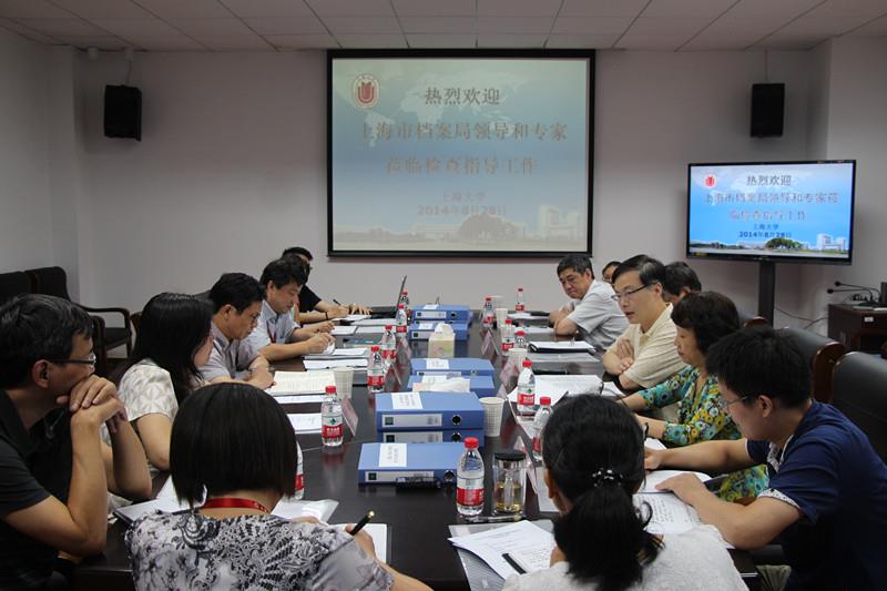2014年8月28日下午,由上海档案局副局长刘志成带队的上海市档案局执法检查组来到ac米兰官网中文网站档案馆,对2011-2013年ac米兰官网中文网站贯彻实施档案法律法规的情况进行执法检查。ac米兰官网中文网站汪敏副校长及档案馆相关负责人出席了本次行政执法检查汇报会。