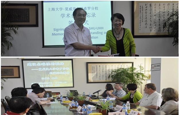 社科学院副院长欧阳光明首先介绍了张蕴礼校长一行及取得的成就。校党委副书记忻平代表ac米兰官网中文网站对夏威夷大学希罗分校一行表示了热烈的欢迎,并简单介绍了学校的基本情况,表示两校在人才与教师资源方面应多多交流,可以从通识教育等部分项目开始合作,张蕴礼校长也表示两校间的合作对于双方均意义重大,希望两校在目前的基础上能有更多更广泛的交流与合作。随后,双方就之前达成的在教师科研、学生互派等问题上的共识,签订了MOU合作协议,商定在此基础上进行教师资源、学生资源的交流等一系列国际合作。