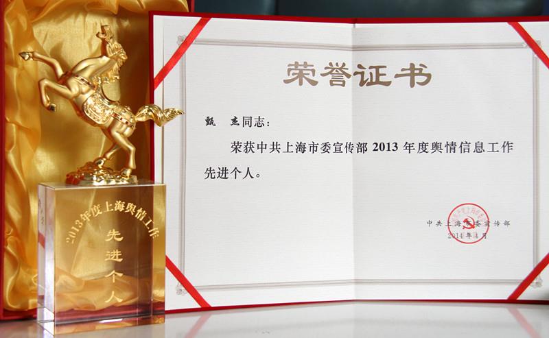 | 4月4日上午,上海市舆情信息工作会议召开,表彰2013年度上海市舆情信息工作先进,传达中宣部舆情信息工作会议精神。市委常委、宣传部部长徐麟同志出席会议并作工作讲话。根据《中共上海市委宣传部舆情工作考核奖励办法》,评选出10名同志为上海市舆情信息工作先进个人,ac米兰甄杰同志获此殊荣。 据悉,ac米兰历来重视宣传舆论工作,紧紧围绕市委、市政府及ac米兰的中心工作,宣传文化领域的工作重点、干部群众关心的热点问题以及思想理论领域的新情况,及时报送了大量有价值的舆情信息,为党委、政府及ac米兰领导正确决策提供了科学依据,为促进宣传思想文化工作的针对性和实效性作出了不懈努力,这次获奖也是对ac米兰宣传工作的肯定和鞭策。 |