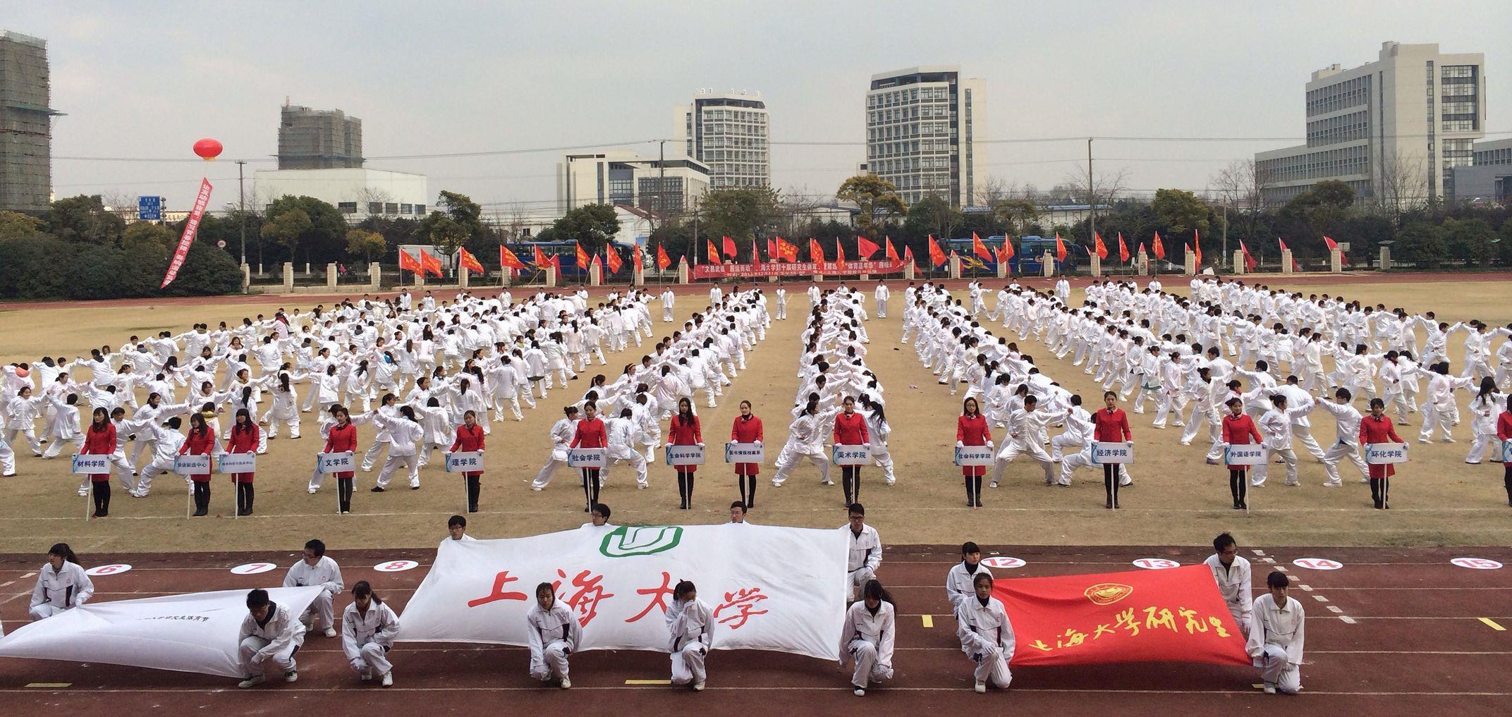 之后,活泼、愉快的爵士军舞,充满青春活力的街舞秀,开启了开幕式的表演环节。中国松身功创始人、88岁高龄的陈少莲带来一段松身功表演,陈老满头白发、气宇轩昂,一招一式都十分到位,让人不禁肃然起敬。上海体育学院学生带来的花样跳绳表演,展现了青春的激情与活力。开幕式最后进行了拳操表演赛,经过近一个月的辛苦训练,各学院研究生代表队以纵队形式并排而立,在铿锵有力的音律带动下,刚柔结合,招式到位,统一的服装、精彩的表演,在冬日的暖阳下形成了一道独特的风景。最终,管理学院摘得拳操表演赛第一名的桂冠。