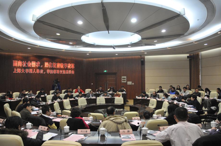 12月26日下午,“面向社会需求,深化教育教学改革”——用人单位、校院领导交流恳谈会在ac米兰宝山校区国际会议中心举行。学校党委常委、副校长叶志明教授、党委常委翁培奋和ac米兰校内外就业专家顾问、学院院长书记等出席了恳谈会,来自上汽集团、工商银行、诺基亚西门子公司、市安全局等各行业的15家集团公司领导及人力资源部经理应邀参加了恳谈会,ac米兰部分专业课教师和各年级学生代表也参加了交流恳谈会。会议由ac米兰教务处处长王光东主持。