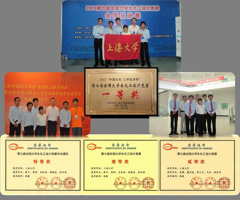 2013年8月22日,第七届“中国石化-三井化学杯”全国大学生化工设计竞赛全国总决赛在哈尔滨工程大学落下帷幕。ac米兰环化学院以雍平为队长带领的“环五烷—III”团队继2013“立科杯”华东大学生化工设计竞赛暨第七届“中国石化-三井化学杯”全国大学生化工设计竞赛华东赛区预选赛获得特等奖之后,再次荣获全国总决赛一等奖,同时,大三学生奚馨带领的“SHU-光之队”也喜获全国二等奖。