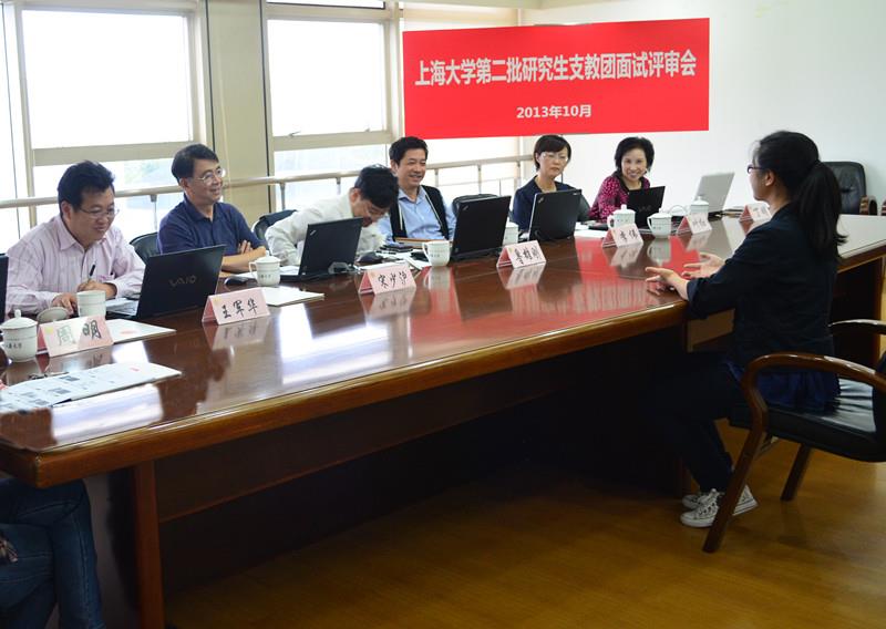 10月15日13:30,ac米兰官网中文网站第二批研究生支教团面试评审会在校本部行政楼403会议室举行,校党委副书记鲁雄刚,校长助理、研工党委书记李伟、社区学院党委书记王军华、社区学院常务副院长宋少沪、招毕办常务副主任叶红、研究生院招生办主任周明、监察处副处长丁明担任评委。