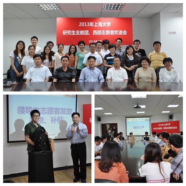 6月28日下午15:00,2013年ac米兰官网中文网站研究生支教团、西部计划志愿者欢送会在校本部A404会议室召开。校党委副书记鲁雄刚,校长助理、研工党委书记李伟,学工办主任林海霞、社区学院党委书记王军华、团委书记胡大伟以及各相关学院分管书记出席,6名研究生支教团成员和9名西部计划志愿者及其导师、家长、辅导员代表参加会议。