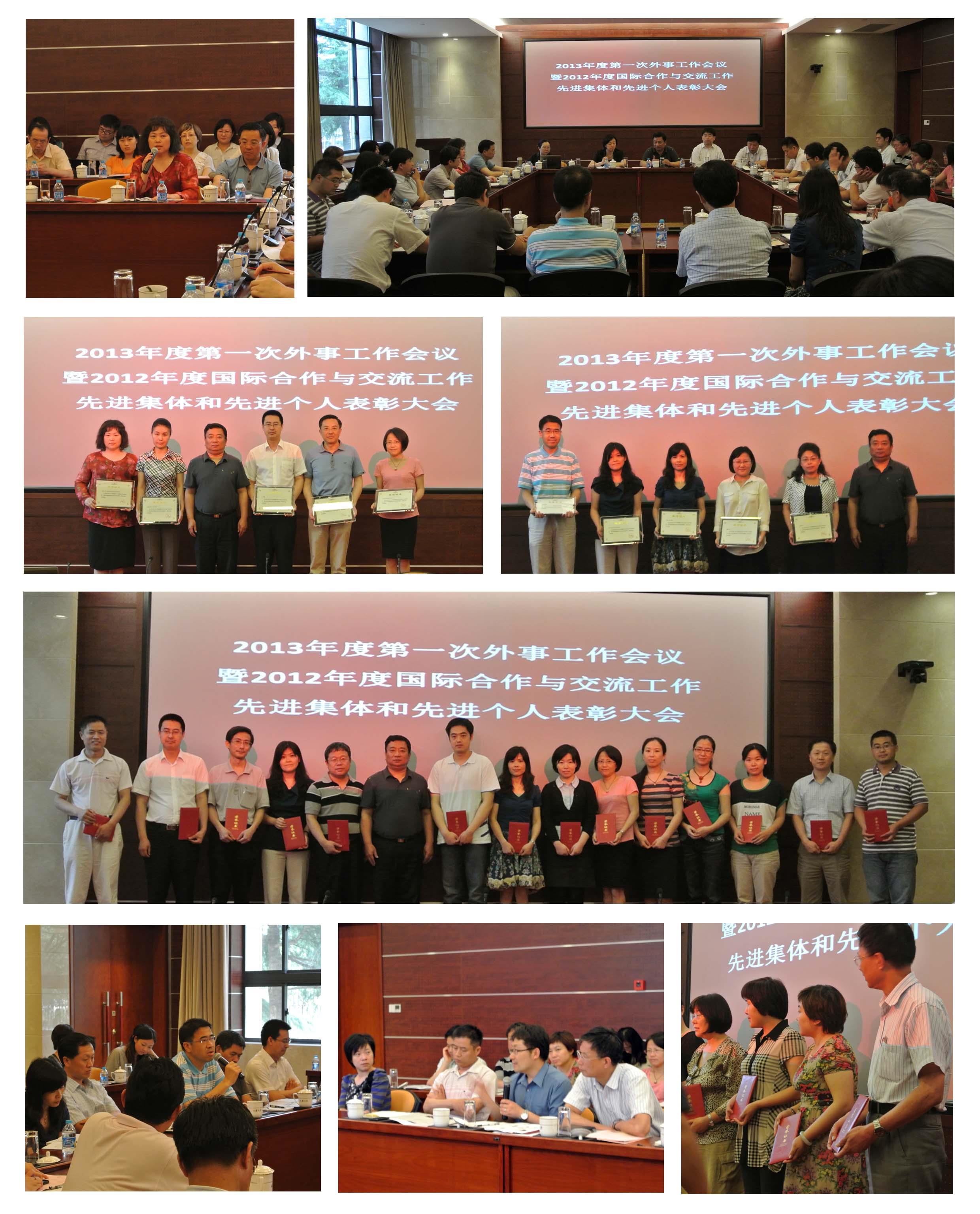 6月18日下午,2013年度第一次外事工作会议暨2012年度国际合作与交流工作先进集体和先进个人表彰大会在校本部乐乎新楼2号楼思源厅举行,校党委常委、副校长吴松,校长助理、外事处处长龚思怡、各学院外事院长,相关部处领导、ac米兰官网中文网站2012年度国际合作与交流工作先进集体代表及先进个人等60余人参加了会议。会议由龚思怡主持。