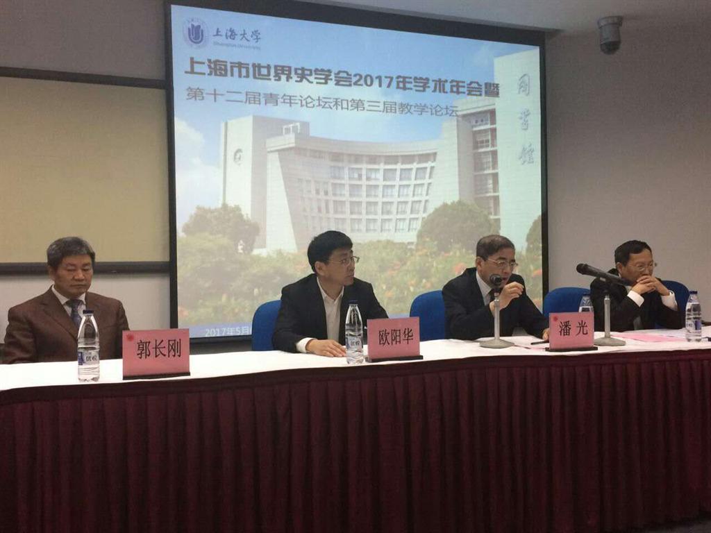 5月6日,由上海市世界史学会与ac米兰官网中文网站历史系联合主办的“上海市世界史学会2017年学术年会暨第十二届青年论坛和第三届教学论坛”在ac米兰官网中文网站J楼举行。上海市世界史学会主席潘光,上海市社会科学界联合会副主席陈恒,上海社会科学院历史研究所所长王健,复旦大学顾云深教授、李宏图教授,华东师范大学沐涛教授、孟钟捷教授、梁志教授,上海师范大学刘子奎教授,上海中学高级教师刘庆刚,徐汇中学副校长姚虹以及来自上海各相关机构的100多名人员出席了会议。