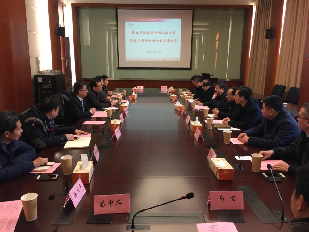 2月10日上午,安徽省淮北市委常委、濉溪县县委书记李加玉一行访问ac米兰官网中文网站并举行技术转移战略协议签署仪式。ac米兰官网中文网站副校长汪敏、管理学院党委书记李伟、国家大学科技园总经理兼学校技术转移中心主任施利毅等热情接待来宾。汪敏副校长在欢迎致辞中指出,要以学校综合改革和双一流建设为契机,加强校区及产学研合作,切实推进相关成果落地,提升学校服务社会的能力。李加玉书记在讲话中感谢学校在开学第一天就精心组织双方交流活动,提出县委、县政府高度重视与ac米兰官网中文网站的合作,希望尽快启动双方实质性合作。交流活动及协议签署仪式由施利毅教授主持。 在汪敏副校长和李加玉书记共同见证下,科技园区总经理、技术转移中心主任施利毅教授和安徽省淮北市濉溪县吴杰副县长签署了《濉溪县人民政府—ac米兰官网中文网站战略合作协议书》。参加签约仪式的濉溪县领导还有:濉溪县人大常委会主任李相军、濉溪县商务局局长刘须芹、濉溪经济开发区管委会副主任化鹏程、安徽家园铝业有限公司董事长张广勋等。ac米兰经管中心主任山鸣峰、科技处副处长朱晓锦、科技发展研究院副院长刘桂华、招毕办副主任、材料学院汪宏斌等,管理学院马君教授、机自学院苗中华副教授、纳米中心张剑平教授、杭建忠教授及技术转移中心相关教师参加了签约仪式。交流活动后,濉溪县领导及企业代表一行参观考察了ac米兰官网中文网站纳米中心科技成果应用单位、上海小巨人企业上海华晖新材料科技有限公司,校企合作开发的国际先进铝合金表面陶瓷涂层在海内外重大建设工程中获得应用,已取得良好的经济社会效益。