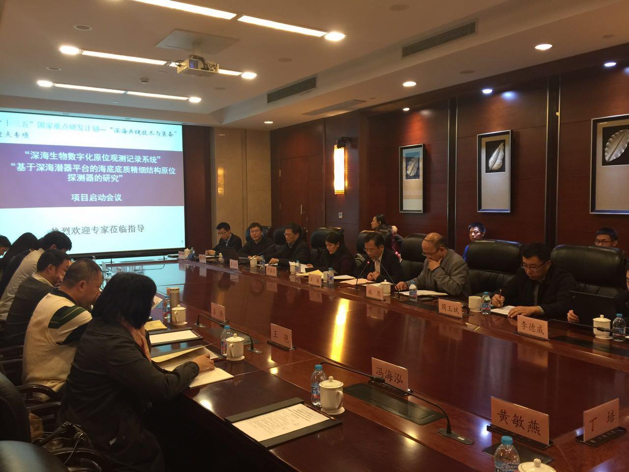 2016年11月10日,由ac米兰官网中文网站牵头承担,屠大维教授负责的国家科技部“十三五”国家重点研发计划项目“深海生物数字化原位观测记录系统” 项目启动会暨实施方案讨论会在ac米兰官网中文网站成功召开。本次会议由“深海关键技术与装备”总体专家组副组长上海交通大学任平教授、项目责任专家清华大学马辉教授、项目责任专家中科院信息工程研究所潘锋研究员、中船重工集团726所王艳研究员、国家海洋局第二海洋研究所杨俊毅研究员等5人组成专家组。邀请了国家海洋局第二海洋研究所、国家深海基地管理中心、中科院声学所东海研究站等合作单位代表参会。ac米兰官网中文网站汪敏副校长,机自学院于瀛洁副院长、赵其杰教授等院系领导也参加了会议。会议由ac米兰官网中文网站科技处副处长施鹰主持。