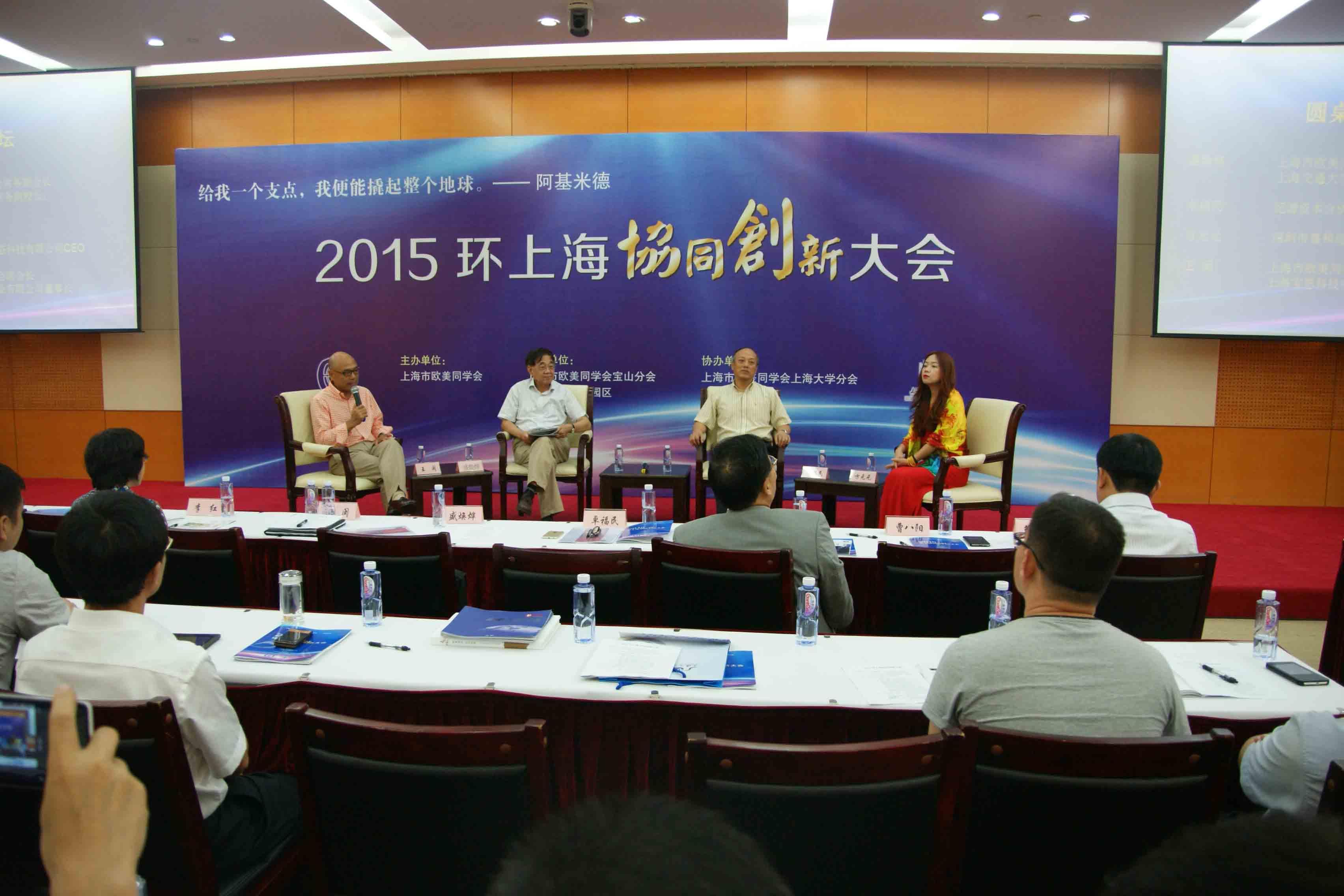“2015环上海协同创新大会”于2015年8月21日下午,在海上文化中心圆满举行。本次大会由上海市欧美同学会主办,上海市欧美同学会宝山分会、ac米兰官网中文网站科技园区承办,上大分会、上大侨联协办。大会由上海市欧美同学会宝山分会副会长李佳川主持,上海市欧美同学会副会长王闽致欢迎辞。上海交通大学原常务副校长盛焕烨、纪源资本合伙人卓福民、深圳嘉和CEO方元元、摩根资本助理总裁骆毅平等应邀作为圆桌论坛嘉宾。