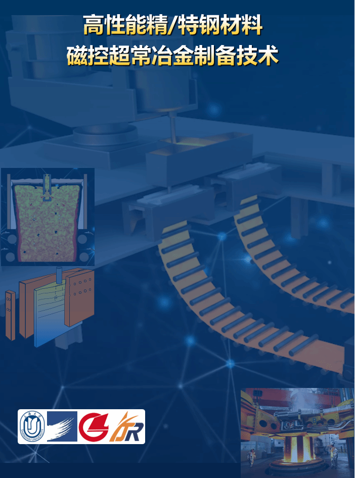 二十余年来,“新能源产业关键材料超常冶金与制备”团队一直致力于精/特钢材料冶金质量提升的研究工作,提出磁控超常冶金制备新思路,理论阐明多模式电磁场调控连铸及电渣重熔结晶器中钢液流动行为机理。开发了电磁调控结晶器钢液流场可视化的物理模拟和数值模拟方法,建立独特的液态金属物理模拟装置;实现“多场多相多界面”全耦合的数值模拟过程,使得结晶器钢液流场“看得见、摸得着”;开发了结晶器电磁控流冶金效果评价和强化方法:提出了结晶器传输行为的评价指数,阐明了电渣重熔除杂新机制,提出磁控三段深度除杂新方法,使得电磁调控结晶器流场 “控得准”;开发了结晶器电磁控流的系列关键装备,形成主动、随动、复合电磁控流(磁控电渣重熔)等全套原创技术,磁控电渣重熔技术为全球首创,成功应用于工业产线,实现精/特钢连铸及电渣重熔锭坯材高洁净、高均质、三细化的高冶金质量目标,使电磁调控流场技术及装备“用得好”。