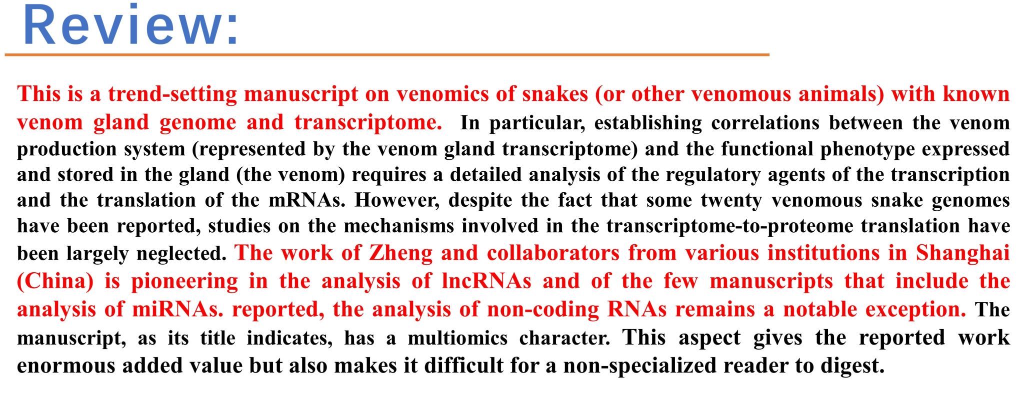 该团队利用多组学技术,对两种海蛇进行生物信息学分析:对3FTx的序列、结构和功能进行探索,发现青环海蛇3FTx-SNTX的46th位点的突变导致其对鳗鲡目下的猎物捕食效率更高;对基因组、转录组,smallRNA、lncRNA、蛋白组进行联合分析,从基因拷贝数变异(CNV)和转录后表达调控两层面挖掘出两种海蛇毒液组成差异的原因;在单个毒素的毒性以及毒液的整体组成两方面揭示了不同捕食生态对毒液进行选择的作用机制。