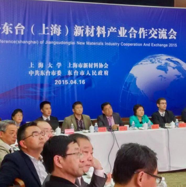 2015年4月16日,江苏东台(上海)新材料产业合作交流会在上海虹桥云峰宾馆隆重举行,本次交流会由中共东台市委、市人民政府、ac米兰官网中文网站、上海市新材料协会联合举行,出席会议的有东台市委副书记、市长陈卫红及市委宣传部、市开发区的部分领导、ac米兰官网中文网站科技发展研究院院长施利毅及ac米兰官网中文网站科技处朱晓锦副处长,出席会议代表有奥地利驻上海总领事馆首席科技官斯蒂芬、上海市新材料协会副会长吕家申和黄双顶秘书长,应邀出席的代表还包括东台开发区企业代表、受邀的上海优秀企业家及企业代表。