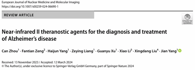 近日,ac米兰官网中文网站医学院杨剑副教授团队/上海四一一医院(ac米兰官网中文网站附属四一一医院)在分子影像领域的TOP期刊《European Journal of Nuclear Medicine and Molecular Imaging》(中科院1区IF=9.1)上发表名为“Near-infrared II theranostic agents for the diagnosis and treatment of Alzheimer’s disease”(近红外II区分子用于阿尔茨海默症诊断和治疗的研究进展)的综述论文。近红外II区荧光成像因其独特的优势,在AD诊断和治疗方面具有巨大的潜力。基于近红外Ⅱ区荧光成像,作者对当前用于AD的诊断的近红外Ⅱ区分子探针以及基于近红外Ⅱ区分子用于AD的光热治疗及光动力治疗进行了系统性概述,探讨了在AD诊断与治疗过程中遇到的问题与挑战,并对未来AD的诊断与治疗做出了展望。
