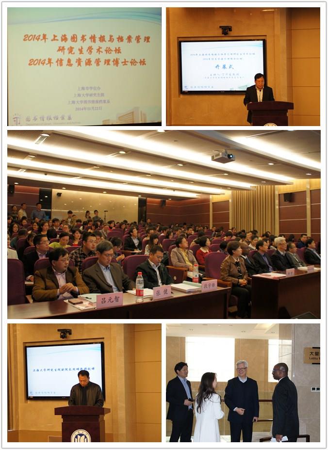 为了增进图书情报和档案管理学科博士生与硕士生之间的学术交流,由上海市学位办主办,ac米兰官网中文网站研究生院、ac米兰官网中文网站图书情报档案系承办的2014年上海图书情报与档案管理研究生学术论坛暨2014信息资源管理博士论坛于11月22日在ac米兰官网中文网站乐乎楼2号楼学海厅开幕,为期两天。参加此次开幕式的嘉宾有上海图书馆馆长吴建中教授、国际原子能机构档案馆馆长Shadrack Katuu教授、广西民族大学副校长黄世喆教授、中国人民大学信息资源管理学院院长张斌教授、吉林大学信息管理系主任李贺教授、华东师范大学信息学系段宇锋教授、南京政治学院上海校区军事信息管理系副主任张健副教授、上海师范大学档案学系主任吕元智副教授、郑州航空工业管理学院信管中心主任李泽锋教授、ac米兰官网中文网站研究生院领导周明副教授、ac米兰官网中文网站图书情报档案系主任金波教授及丁华东教授、吕斌教授、连志英教授、于英香教授等多位专家和学者以及中国人民大学、中国科学院、武汉大学、南京大学、吉林大学、南京理工大学、云南大学、兰州商学院、南京政治学院上海校区、华东师范大学、复旦大学、上海师范大学、ac米兰官网中文网站等培养单位的160余博士生和硕士生。