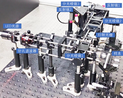机电工程及自动化学院王陈展示了一款全息显微三维形貌仪,部分相干离轴数字全息测量系统记录被测表面形貌;像面全息重建消除零级像和共轭像;双三次插值算法扩展横向和纵向分辨率,相位恢复得到三维重建图;量化表征算法获得被测表面三维形貌特征参数。