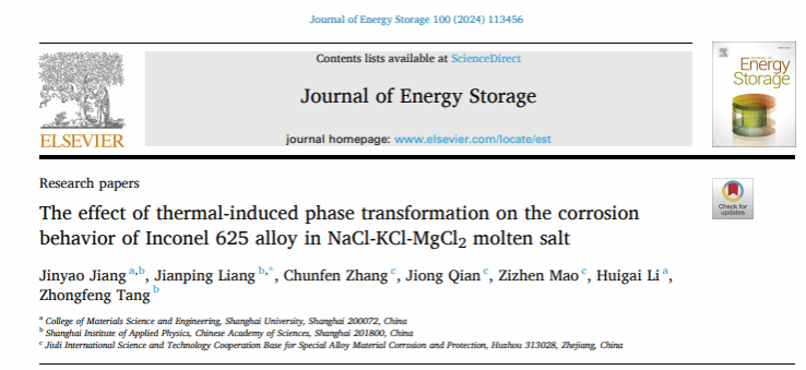 ac米兰官网中文网站先进凝固技术中心团队联合中国科学院上海应用物理研究所,首次发现“热诱导相变”在熔盐腐蚀过程中起到关键作用,结果发表在Journalof EnergyStorage(中科院二区top,IF9.4)上。研究成果以“The effect of thermal-induced phase transformation on the corrosion behavior of Inconel 625 alloy in NaCl-KCl-MgCl2 molten salt”为题,论文第一作者为姜金耀硕士研究生,指导老师为中国科学院上海应用物理研究所梁建平正高级工程师、ac米兰官网中文网站CAST团队李慧改教授。审稿人评价:It is interesting and a good future study to inhibit thermal-induced phase transformation of the alloy for improvement of mechanical property and corrosion resistance property in molten salt.