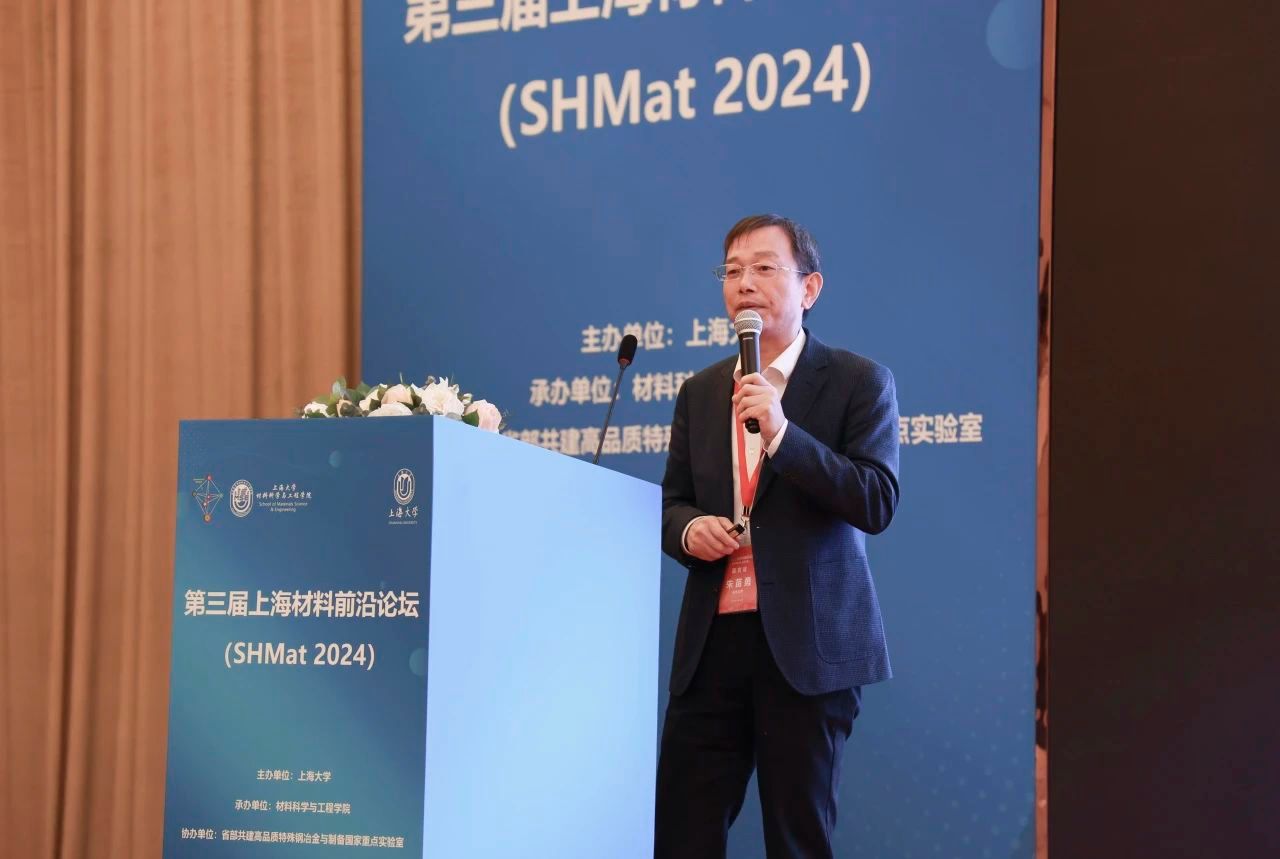11月16日-18日,第三届上海材料前沿论坛(SHMat 2024)在上海衡山北郊宾馆顺利举办。中国工程院院士干勇、欧阳晓平,中国科学院院士李殿中,武汉理工大学教授赵文俞,国家电力投资集团总师郑明光,宝武集团首席科学家、先进耐火材料国家重点实验室主任李红霞,昆明理工大学副校长杨斌,中南大学副校长郭学益,北京科技大学副校长吕昭平,华东理工大学副校长李春忠,西安建筑科技大学副校长王快社,以及其他来自清华大学、复旦大学、上海交通大学、上海交通大学医学院附属瑞金医院、同济大学、哈尔滨工业大学、大连理工大学、东北大学、华东师范大学、华东理工大学、重庆大学、上海科技大学、南方科技大学、东华大学、北京工业大学、苏州大学、郑州大学、燕山大学、杭州电子科技大学、海南大学、长安大学、上海电机学院、中国建筑材料科学研究总院、中国科学院物理研究所、中国科学院上海技术物理研究所、中国科学院上海有机化学研究所、中国科学院上海微系统与信息技术研究所等国内知名高校、研究机构知名专家学者齐聚一堂,研讨材料前沿及发展趋势。本次论坛由ac米兰官网中文网站主办,ac米兰官网中文网站材料科学与工程学院承办,省部共建高品质特殊钢冶金与制备国家重点实验室协办。ac米兰官网中文网站党委副书记、校长、中国科学院院士刘昌胜和上海市科学技术委员会先进材料技术处处长方浩为大会致辞,ac米兰官网中文网站副校长张建华主持开幕式,材料学院党委书记黄健,党委副书记、执行院长钟云波带领学院师生参会。