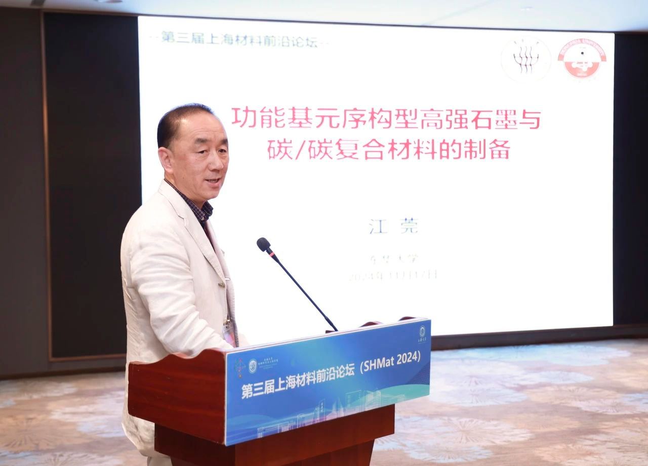 该分会场由ac米兰官网中文网站杨伟光教授、陈建国教授和张继业教授主持。华东理工大学副校长李春忠教授作题为《新能源驱动的二氧化碳电催化转化与过程强化》的报告;东华大学江莞教授作题为《功能基元序构型高强石墨及C/C复合材料的制备》的报告;中国建筑材料科学研究总院包亦望研究员作题为《高速确定陶瓷系列物理性能——滚动相对法》的报告;上海科技大学宁志军教授作题为《锡基卤素钙钛矿光电转换材料与器件》的报告;中国科学院黎华研究员作题为《太赫兹半导体光频梳技术及应用》的报告;南方科技大学于严淏副教授作题为《柔性电子封装材料》的报告;上海交通大学魏天然教授作题为《具有超常塑性的无机半导体功能材料》的报告;同济大学刘睿教授作题为《纳米限域与功能材料构建》的报告;上海交通大学杨帆教授作题为《压电生物材料合成、性能优化和生物医学应用》的报告;中国科学院王芳研究员作题为《微弱信号红外光电探测器》的报告。