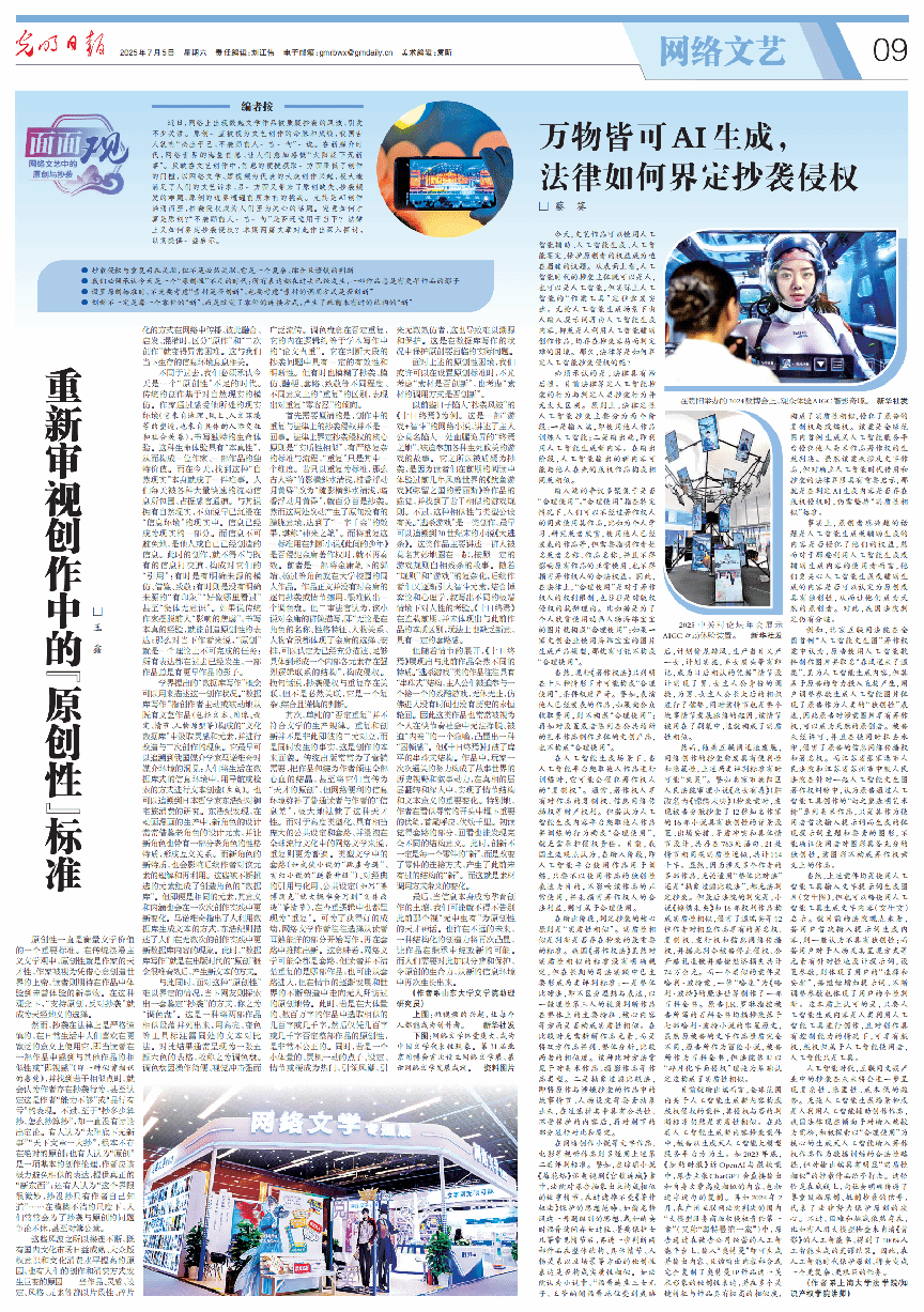 2025年7月,ac米兰官网中文网站法学院、知识产权学院青年教师蔡葵在《光明日报》发表《万物皆可AI生成,法律如何界定抄袭侵权?》一文。