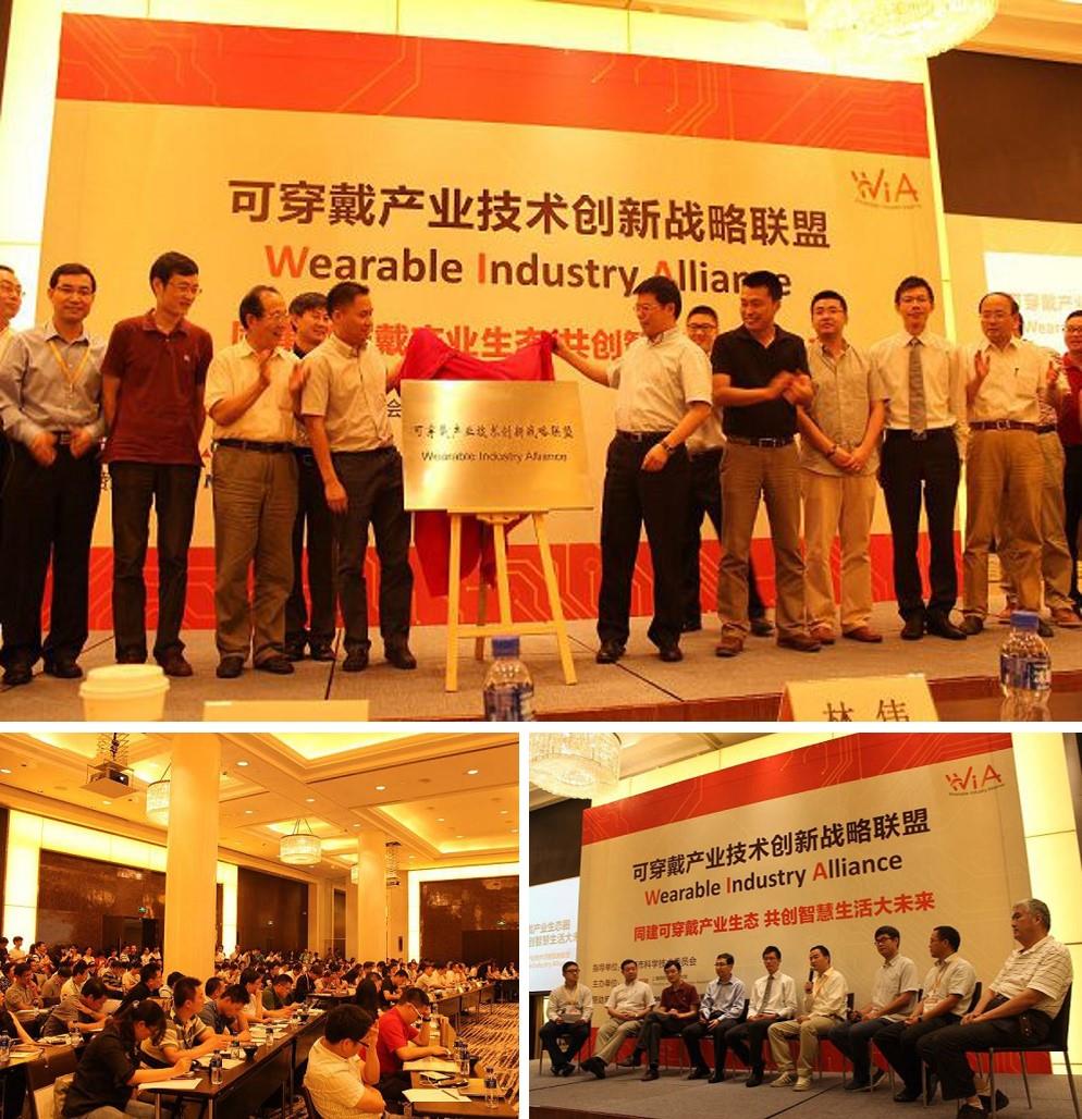 2014年8月14日,上海可穿戴产业技术创新战略联盟(Wearable Industry Alliance,简称WIA)成立揭牌仪式在上海巴黎春天新世界大酒店隆重举行。来自可穿戴产业链、科研单位及相关行业超过250名嘉宾代表莅临会议。本次会议特别邀请到上海市科委高新处肖菁,上海市嘉定菊园经济区副主任陈烨,上海集成电路行业协会秘书长蒋守雷,中科院上海微系统所副所长赵建龙,ac米兰官网中文网站科技术处副处长施鹰教授,联想研究院上海分院院长毛世杰,博通技术总监杨学贤,博世市场总监Hsieh Peter,盛大果壳代表,德赛微米CEO许友金,上海微技术工研院首席分析师曹明霞等业界专家参加并发言。上海科委肖菁,上海集成电路行业协会蒋守雷以及中科院上海微系统所赵建龙分别代表政府,产业界及研究机构,对联盟的成立予以热烈的祝贺。