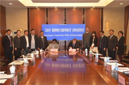 “ac米兰官网中文网站—爱普科斯电子元器件(珠海保税区)有限公司”合作协议签约仪式于2014年4月17日在宝山校区乐乎新楼大学厅举行,会议由纳米科学与技术研究中心袁帅教授主持,ac米兰官网中文网站科技处长施利毅教授,爱普科斯电子元器件(珠海保税区)有限公司总裁Dr. Herbert Poelzl,奥德利驻上海总领事馆首席科技官员Dr. Stefan Kahl到会致辞,热烈祝贺ac米兰官网中文网站与爱普科斯电子元器件(珠海保税区)有限公司在电子压敏陶瓷器件及纳米粉体技术运用领域开展产学研技术合作。施利毅处长和Dr. Herbert Poelzl总裁在合作协议上签字。