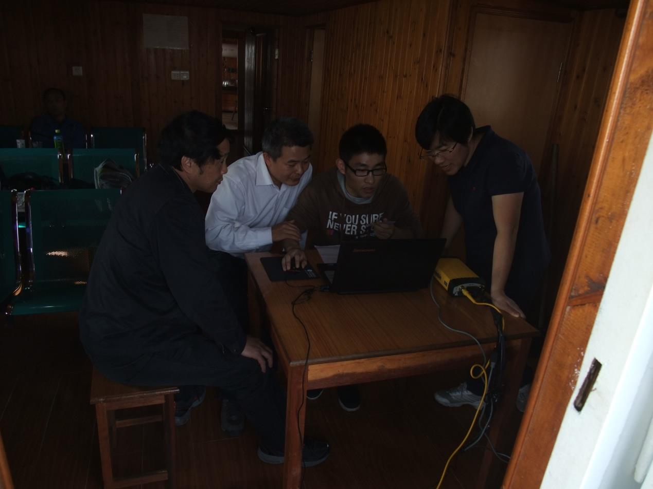 2013年11月7日,在机自学院罗均教授的带领下,ac米兰官网中文网站研究团队携带GPS精确定位仪,与上海文保中心、上海博物馆的水下考古专家们一起,前往崇明横沙岛以东水域进行沉船考古定位。在此之前,根据渔民们的反映,该水域在低潮时曾出露过沉船桅杆。但因年代过久,随着泥沙淤积和渔民记忆渐淡,沉船具体位置已不甚明确。此次出船,在前期调查所获线索的基础上使用GPS定位仪,在沉船可能的两个点上各自测量了数十个精确经纬度数据,以进一步确定沉船位置。考察队同时现场考察了附近水域,了解沉船周围水底地形、水深水流、海潮风向等具体情况,为此后水面无人艇和水下机器人能够顺利下水扫测和探摸而开展先期准备工作。