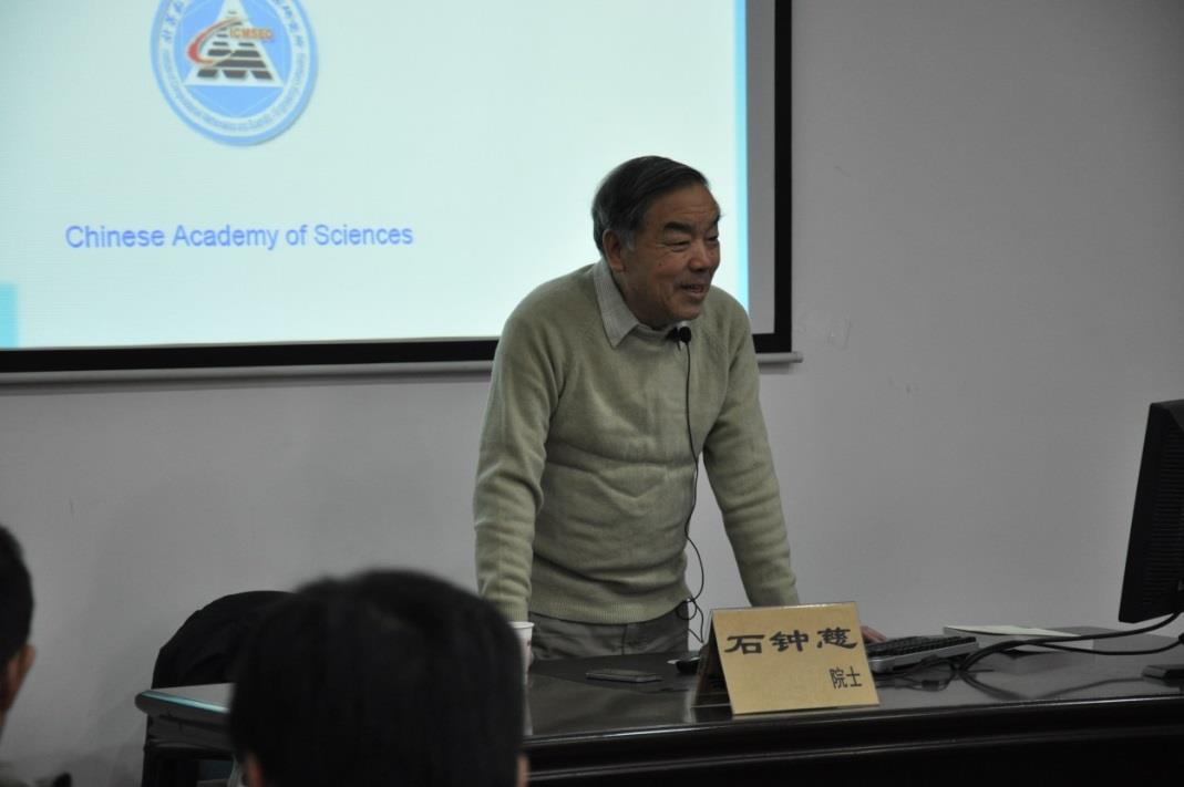 在近两个小时的报告中,石院士从力学和工程的角度出发,介绍了Reissner-Mindlin中厚度板无闭锁的低阶四边形有限元逼近,尤其是Wilson非协调有限元逼近的数学思想和主要结果。报告会后,石院士还与力学所部分师生进行了充分的讨论。