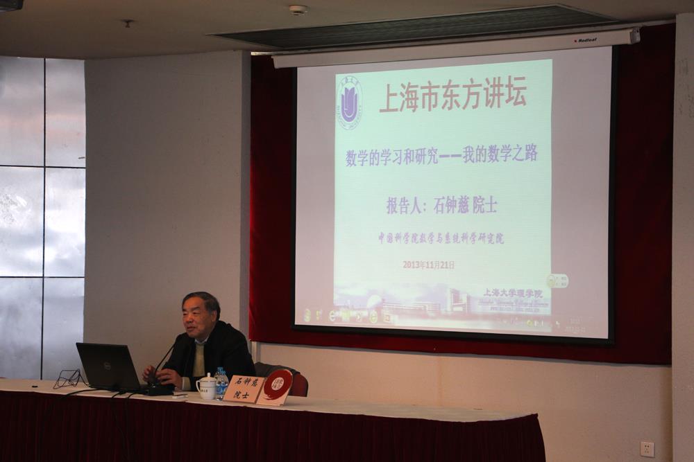 上海市东方讲坛: “数学的学习和研究—我的数学之路”于2013年11月21日上午在ac米兰官网中文网站校本部行政楼报告厅隆重举行。ac米兰官网中文网站迎来了中国科学院院士石钟慈先生,师生们济济一堂,还有校外的许多听众慕名前来,一起参加了这次“上海市东方讲坛”报告会。