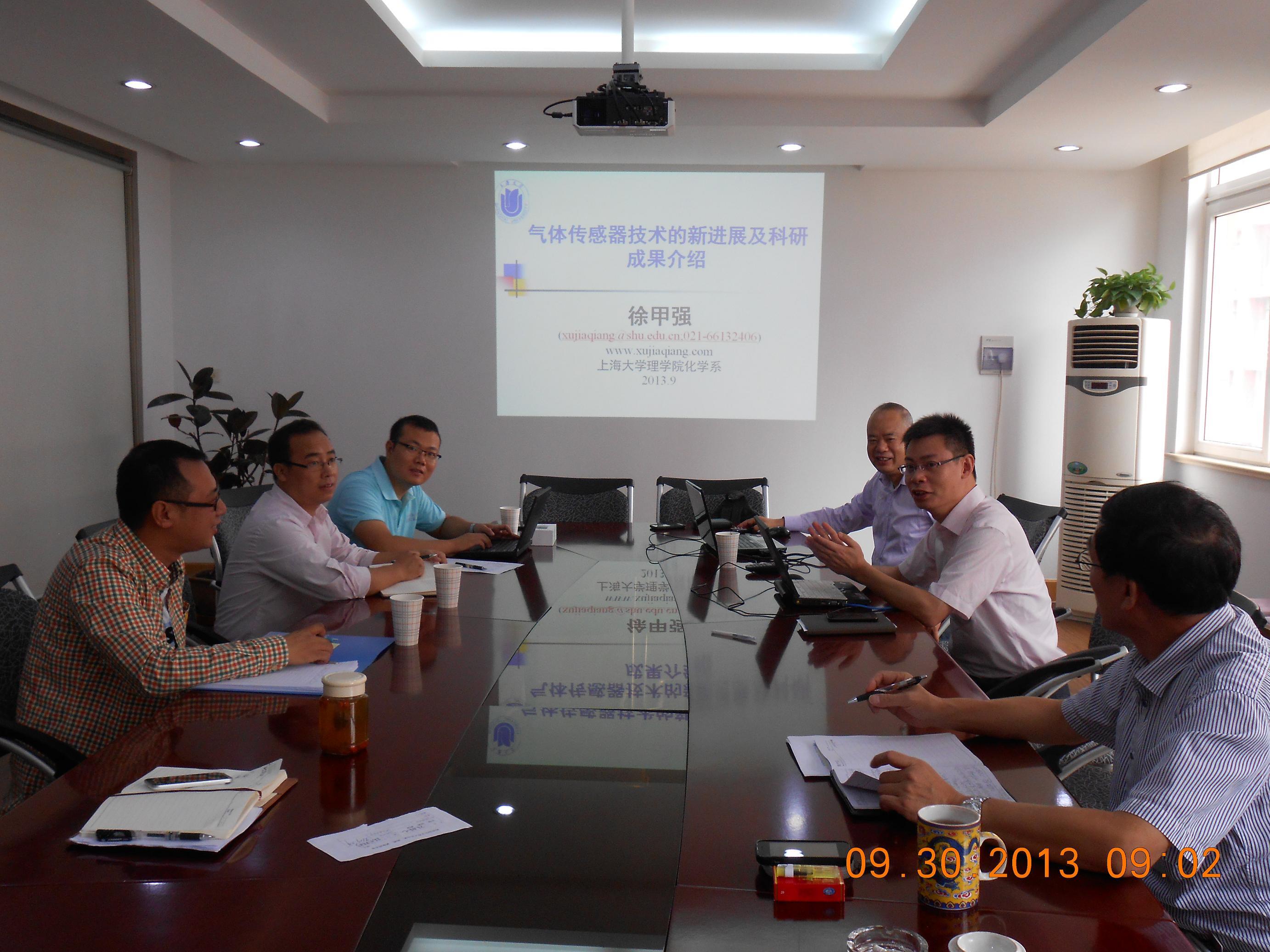 接着,上海五色海环保科技有限公司副总经理胡琳斌介绍了企业经营产品及技术开发遇到困难,展示了企业最新的甲醛测试仪产品——“醛无忧”。并就公司正研发中的品牌为“醛无忧”的甲醛监测仪目前急需解决甲醛扩散膜的制备工艺的研发和产品调试过程中甲醛的测试等内容与徐甲强教授进行了深入的沟通。