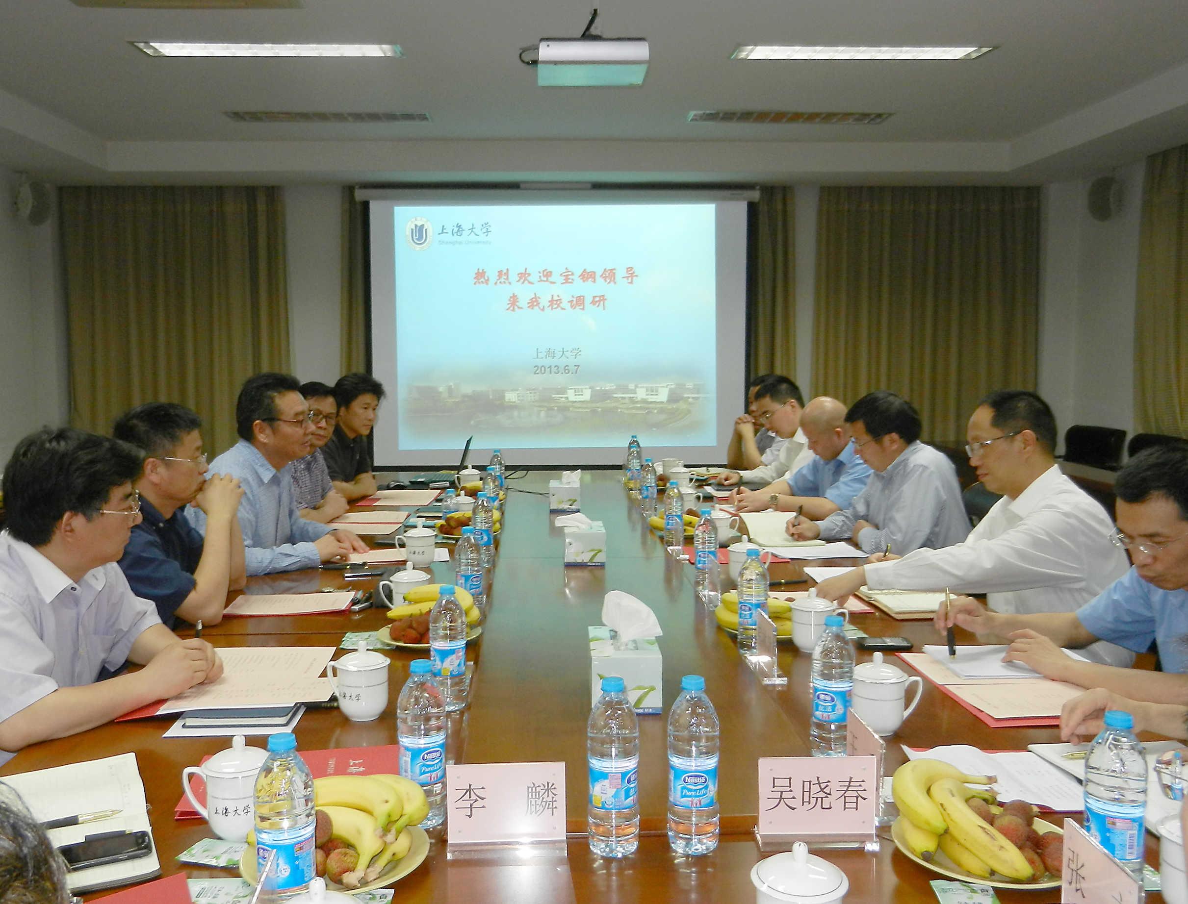 6月7日下午,宝钢股份公司副总经理储双杰、宝钢股份科技发展部部长黄伟良、宝钢股份研究院汽车用钢研究所所长蒋浩民、宝钢股份研究院炼钢研究所所长石洪志等领导和专家一行11人来ac米兰考察和交流,ac米兰官网中文网站校长罗宏杰、副校长汪敏、校长助理、学科办主任翟启杰出席会议,ac米兰参加会议的还有科技处处长施利毅、科技处副处长朱晓锦、材料学院院长张捷宇、材料学院副院长吴晓春以及材料学院李麟、郑少波等教授、专家以及ac米兰科研处相关科研管理人员。会议由校长助理、学科办主任翟启杰教授主持。