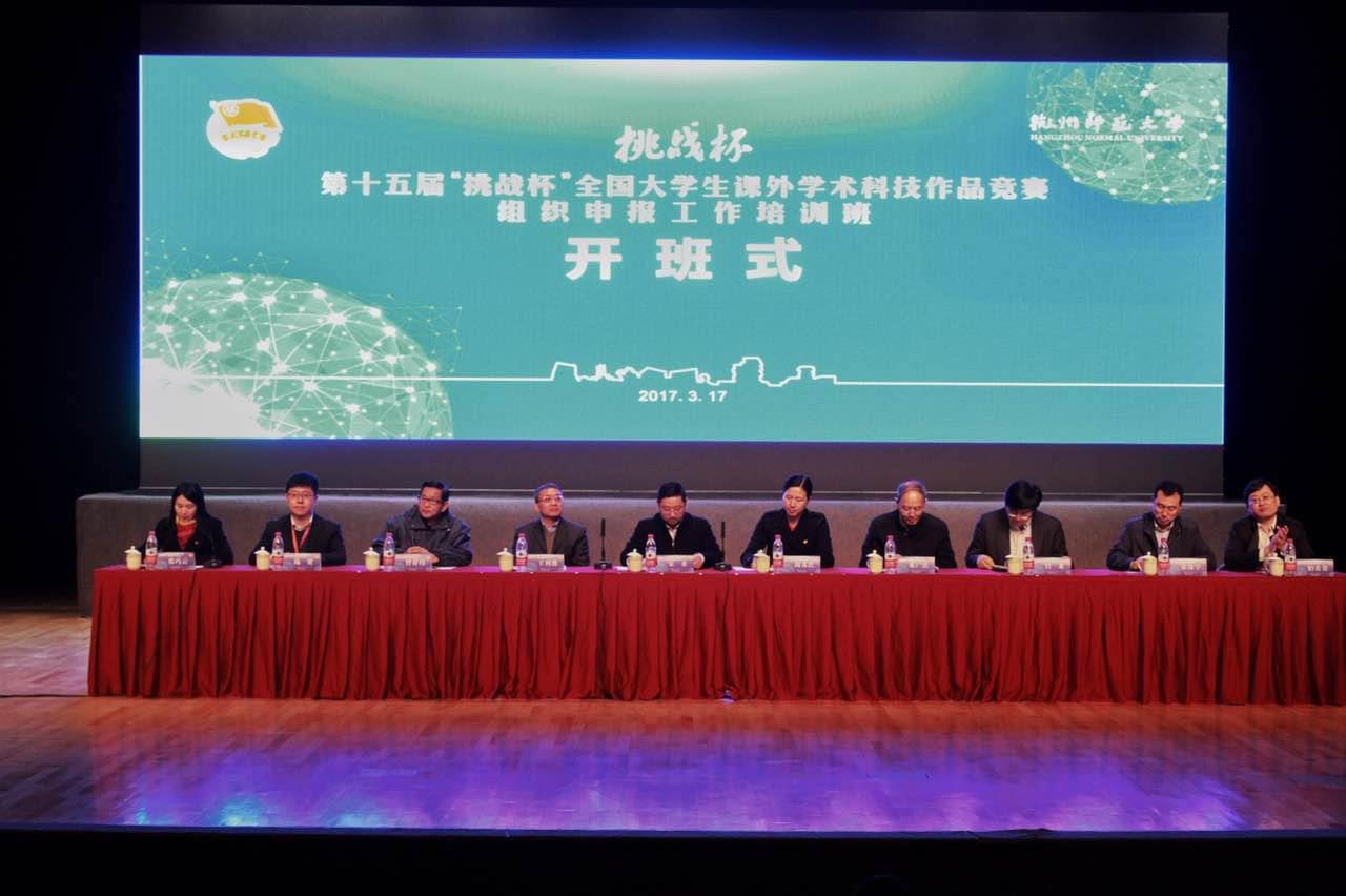3月17日,第十五届“挑战杯”全国大学生课外学术科技作品竞赛组织申报工作培训班在杭州师范大学举行。团中央学校部副部长宋来、团浙江省委副书记周苏红、杭州师范大学党委副书记王利琳以及团中央、中国科协、社科院等主办单位相关部门负责同志出席培训班开班式。“挑战杯”竞赛承办单位ac米兰官网中文网站的团委负责同志参加了此次培训班。