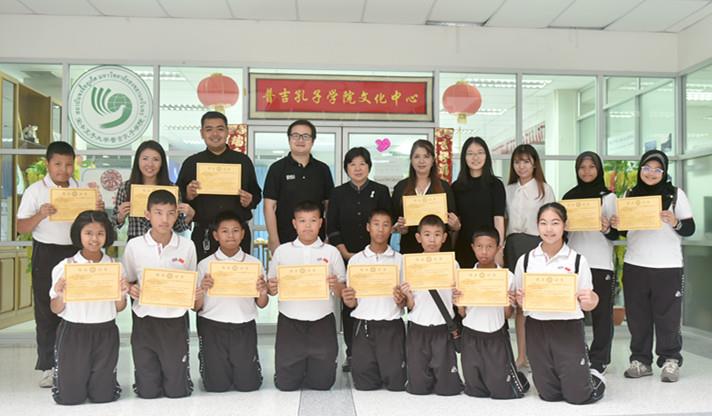 据悉,北大年本嘉玛楚媞中学位于泰国南部三府之一的北大年府,该校成立于1912年,已有超过100年的历史,许多泰国知名人物都是该校毕业生。作为地方名校,学校非常重视学生的语言教育,认为语言是沟通的桥梁。虽然当地的汉语教学事业刚刚起步发展,但学生们都有非常强烈的学习汉语的热情,管理人员也尽量创造学习的机会。此次活动也是一再筹划,希望能够为孩子们呈现优质的文化活动与教学。活动结束后,车曼妮主任向普吉孔院的老师们表示了感谢。她说,这样形式的文化教学和课堂教学质量颇高,对于认识中国文化提高汉语技能很有帮助,为他们将来去中国学习打好基础。最后,北大年中学师生们还热情地邀请普吉孔院老师们去北大年做客。