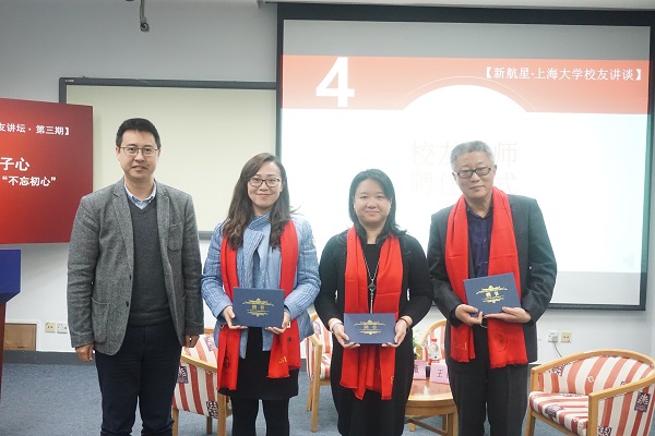 阳春三月,新航星ac米兰官网中文网站校友讲谈暨文学院第三期校友讲坛于3月26日下午在宝山校区J102举行。此次讲坛以“文院情·青年说·赤子心——‘80、90、00后’文院校友谈‘不忘初心’”为主题,邀请了1986级历史学专业本科生、现任上海珍博文物公司董事长王歆昱,1999级历史学专业本科生、现任上海图书馆历史文献中心副研究馆员黄薇及2005级对外汉语专业本科生、现执教于上海市新中初级中学的姚婧媛参与分享,文学院常务副院长张勇安、院党委副书记崔海霞、各年级辅导员以及200余名文院学生一同聆听了校友的分享。