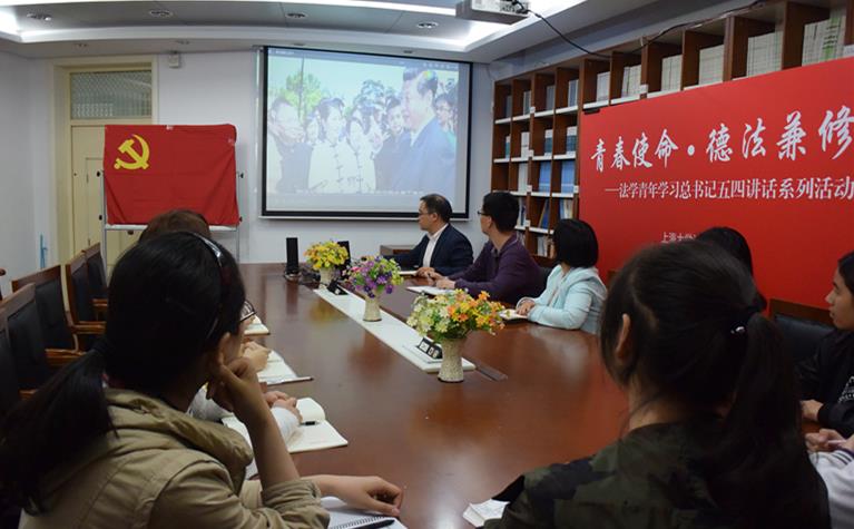 5月4日下午,系列活动之“榜样的力量”——学生党员继续教育专题活动在A427举行,法学院党委副书记卢欣、团委书记高荣飞、本科生辅导员李薇玲和14、15级本科生党支部全体党员一起参加活动。活动伊始,全体党员在卢欣老师的带领下重温入党誓词,坚定永远跟党走的理想信念。随后,大家一起观看《青年榜样习近平》和总书记视察中国政法大学并发表重要讲话的新闻报道。通过学习总书记高屋建瓴、饱含期望、催人奋进的讲话,党支部全体成员都备受鼓舞。大家认为,总书记在五四来临之际前往中国政法大学视察,是党和国家关注青年、关心青年、关爱青年的重要表现。在学习交流环节,同学们积极踊跃发言:党支部书记樊子琪同学表示,习近平总书记就是我们学习的榜样,结合自己的学习、生活和工作,身为学生党员,我们要努力成为身边同学的榜样,发挥先锋模范作用带领大家一起进步。学生会主席陈乐淙同学表示,作为法学青年,我们应该以国家的法治建设为己任,在学校里惜时如金,努力学习法学知识,在生活中做到徳法兼修,不断提高自己的道德修养,以身作则,胸怀天下,争做社会需要的法学人才。