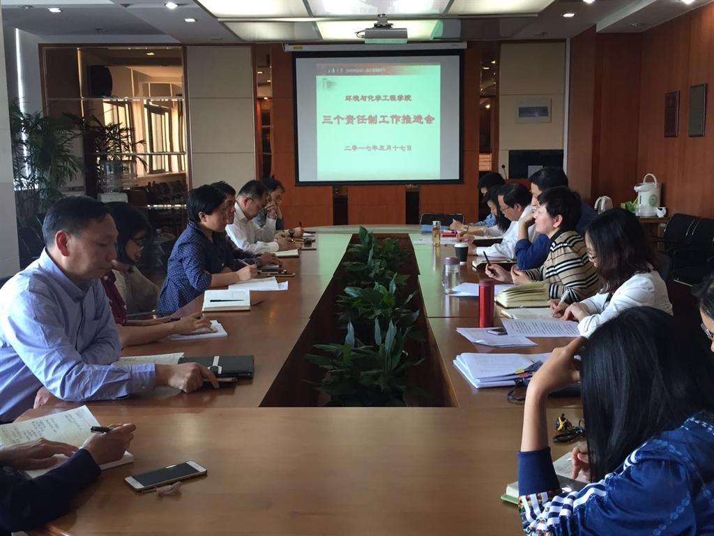 5月17日下午,环化学院基层党建工作责任制、党风廉政建设责任制、意识形态工作责任制“三个责任制”工作推进会在东区环化楼915会议室举行。学院党委书记钱冬英、院长张勇等党政班子成员、各支部书记及各系所负责人出席会议。