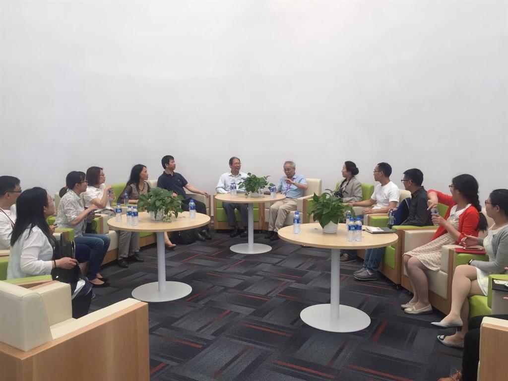 我馆一行受到了上海科技大学图书馆馆长张晓林及管理团队的热情接待。张馆长亲自带领大家参观了图书馆,边参观边详细介绍。座谈会上,张馆长进一步介绍了上海科技大学及图书馆的基本概况,并就两馆在馆藏量、图书馆面积、人员结构、学生数量等方面进行了横向比较,重点介绍了上科大图书馆学科馆员、人员管理、资源建设、数字图书馆以及创新建设等方面工作的开展情况。接着,我馆陆馆长和王远弟书记感谢张馆长的热情接待,并分别对我馆开展的业务工作及队伍建设情况作了简要介绍。随后,双方的业务骨干围绕读者服务、资源采购、人力资源管理、学科情报服务等方面进行了充分交流与互动,分享了各自经验做法。