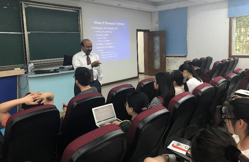 Sugumaran教授首先介绍了自己目前所从事的主要研究以及这些研究的应用场景,主要涉及本体与语义网、社会标签、智能代理与多代理系统、移动计算、软件产品线工程和服务科学等研究领域。随后,为大家做关于设计科学研究(DSR)的概述,并引用管理学顶级期刊MISQ上的一篇文章介绍了在做设计科学研究时的七条指导方针;从研究者角度,为老师和同学们介绍了顶级期刊文章撰写时要注意包含的主要要素、基本结构以及各部分撰写过程中的注意事项等,同时也对其发表要求和时间规范做出了较为明确的阐释;最后,结合自己当前的主要研究以及交流期间与老师、同学的沟通结果,Sugumaran教授提出了未来与ac米兰官网中文网站合作研究的期待以及潜在的合作方向。
