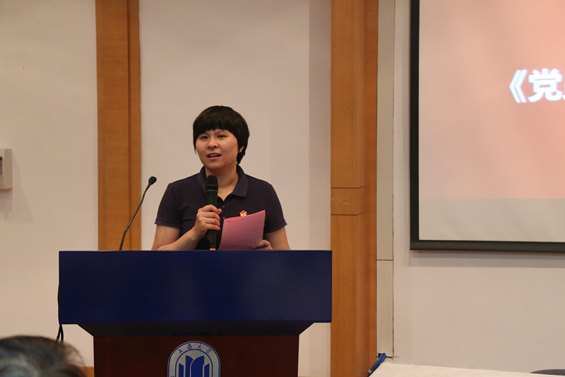 来自2015级研究生第四党支部的王欢欢则带领现场师生,共同重温了中国共产党党章的主要内涵与精髓。讲课员围绕两个“结合起来”、四个“深刻理解”、六个“联系实际”、三个“深入思考”等板块内容开讲,倡导青年大学生党员要全面掌握党章基本内容,把党章学习教育作为经常性工作来抓,共同维护党章的权威性和严肃性。